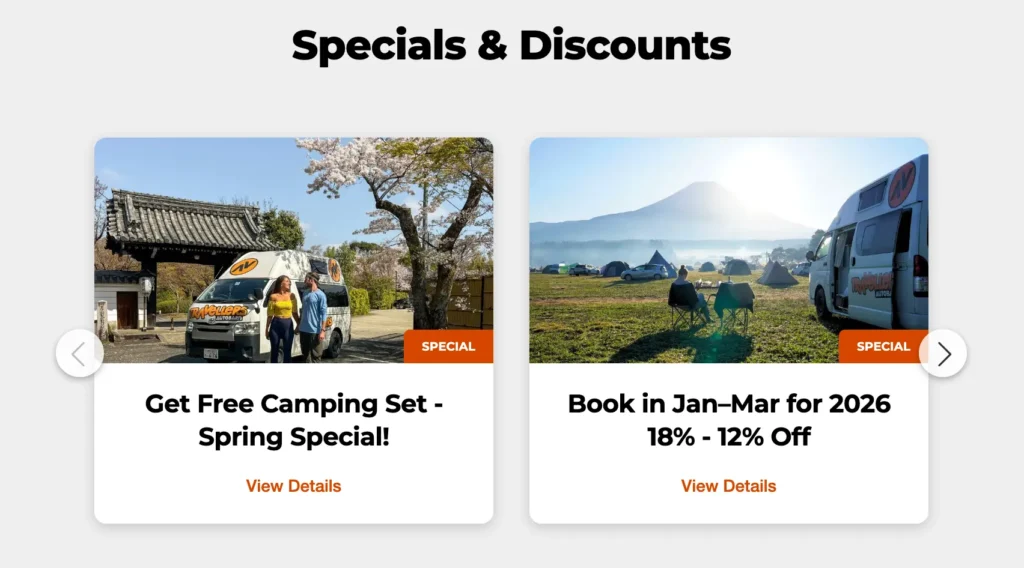 日本でキャンピングカー/キャンパーバンの レンタルサービス を提供する会社で拠点は 成田(東京近郊) にあり、空港からアクセスしやすいです